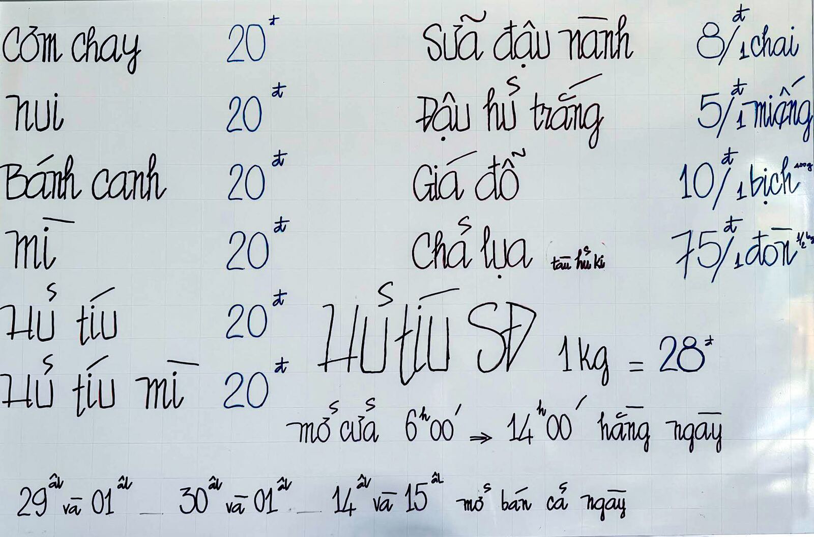 Mở cửa từ 6 giờ sáng đến 2 giờ chiều hàng ngày. Những ngày rằm, mùng 1 âm lịch mở cả ngày phục vụ quý khách thập phương.
